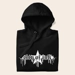 The original "OG" white logo on a black hoodie. We didn't print many of these back in the day, but in this day, they're back! Complete with an embroidered City Of Ink "Dripping Star" on the left wrist.